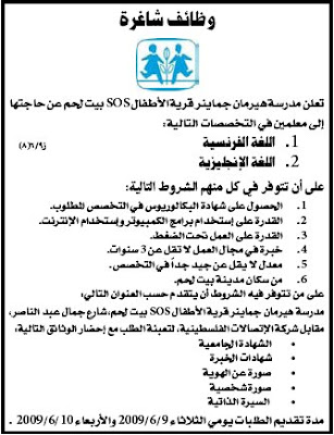 وظائف فلسطين مطلوب معلمين لغة انجليزية ولغة فرنسية بيت لحم
