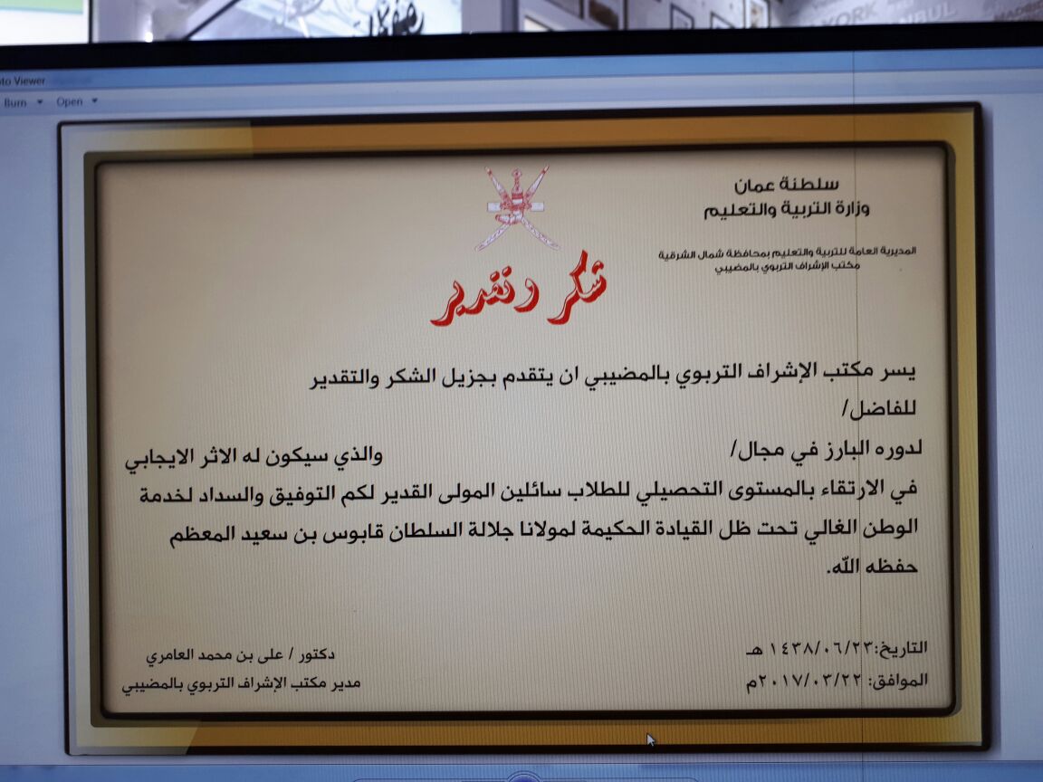 مكتب الإشراف التربوي بالسويق A Twitter اختتم قسم تقنية المعلومات بتعليمية شمال الباطنة فعاليات الإنماء المهني برعاية الدكتور صالح بن ناصر الناصري مدير مكتب الإشراف التربوي بالسويق وحضور الأستاذ طالب السعيدي مشرف