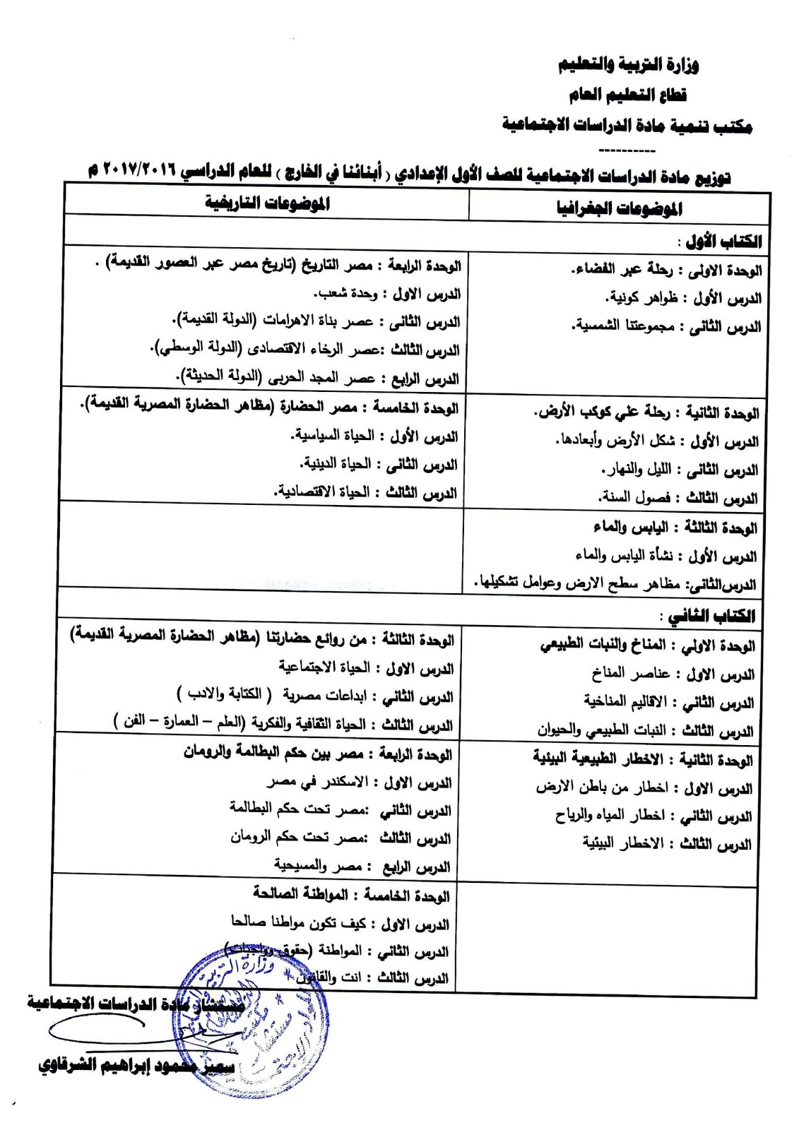 توزيع منهج الدراسات الإجتماعية لطلاب المرحلة الإعدادية فى الخارج 2016 2017