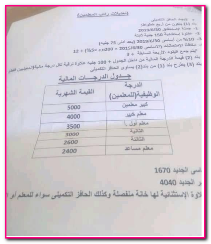 السبورة عاجل منشور الحد الادنى لمرتبات المعلمين والإداريين بالتربية والتعليم وفقا لجدول الدرجات المالية الجديد مستند
